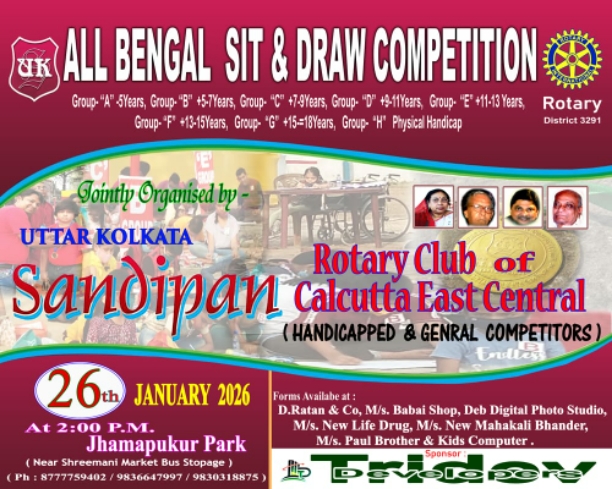 All Bengal Sit & Draw Competition jointly organised by Uttar Kolkata Sandipan & Rotary Club of Calcutta East Central on 26th January 2026 at Jhamapukur Park, Raghunath Chatterjee Street, Kolkata -700006